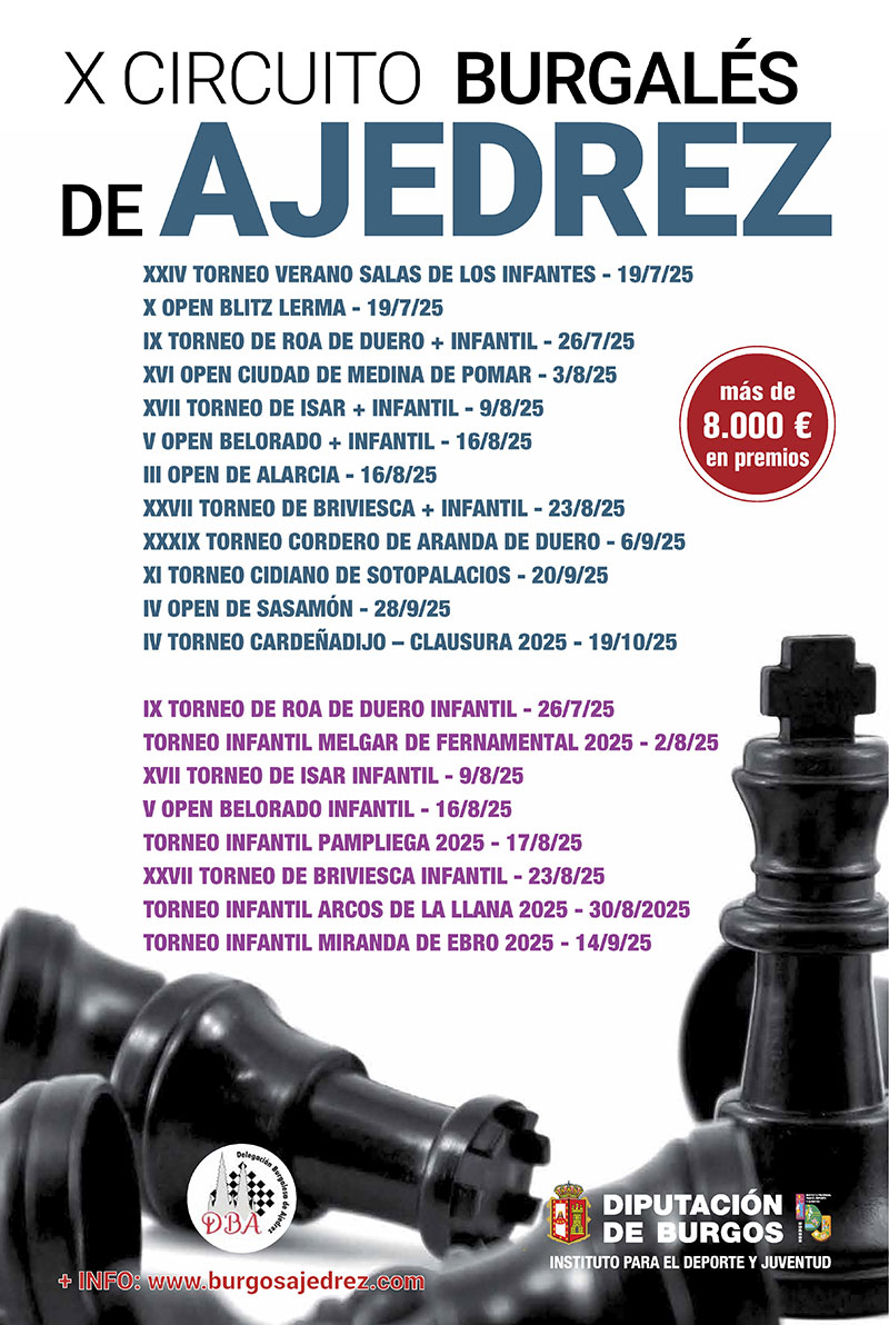 La ciudad de Miranda de Ebro será el escenario, el próximo domingo 14 de septiembre, del VIII Torneo Infantil de Ajedrez, una cita ya consolidada en el calendario del X Circuito Provincial de Ajedrez que impulsa el Instituto Provincial para el Deporte y Juventud de la Diputación de Burgos.