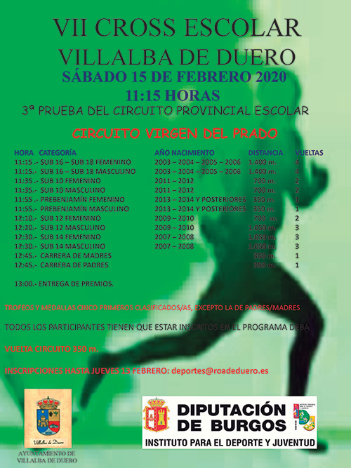 Inscripciones hasta el jueves 13 de febrero a través de este e-mai: deportes@roadeduero.es