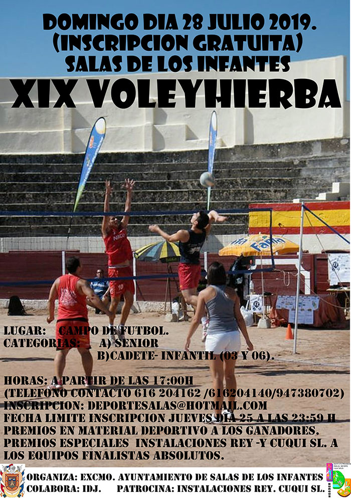 El Ayuntamiento de Salas de los Infantes, con la colaboración del Instituto Provincial para el Deporte y Juventud, organizan la 19ª edición del Torneo de Voléy Hierba “Ciudad de Salas de los Infantes”.