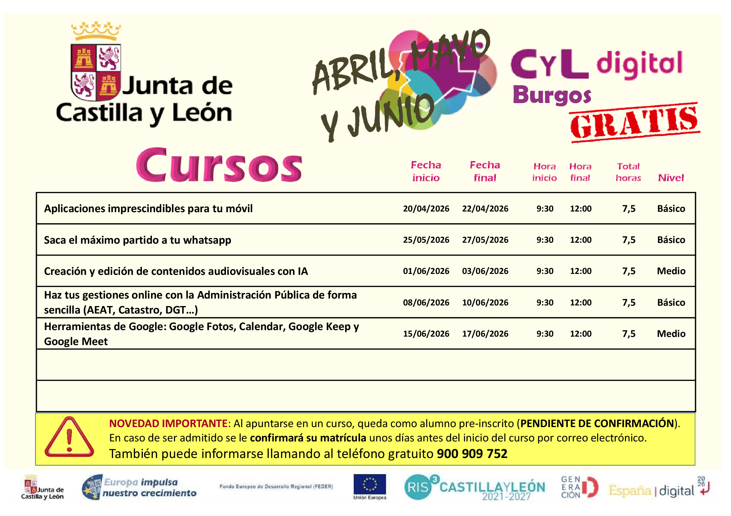 Para más información e inscripciones, selecciona Burgos el apartado de formación presencial en la web de CyL Digital que encontrarás en el siguiente enlace: "Formación presencial en la web de CyL Digital"