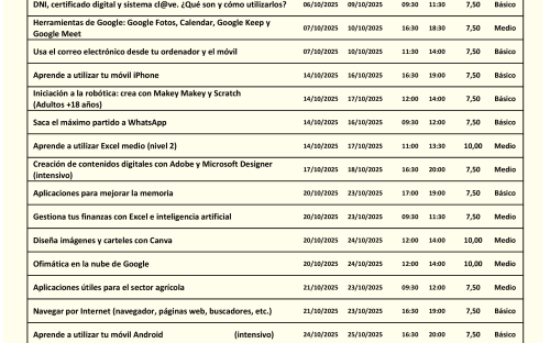 Estos cursos permiten adquirir nuevas competencias, desde informática básica hasta inteligencia artificial. Cada curso está impartido por expertos en la materia y cuenta con un enfoque práctico para aplicar lo aprendido de inmediato.